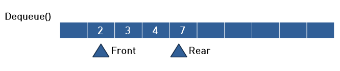 Dequeue() 를 한다면 front부터 데이터가 삭제되는 것을 알 수 있다.