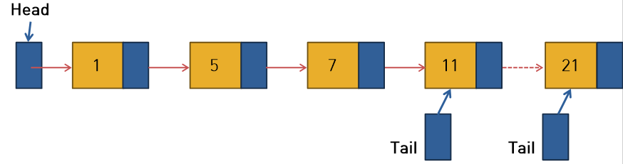 만약 연결 리스트에서 삽입 작업이 주로 리스트 끝에서 일어난다면 테일 포인터를 하나 더 두면 된다.
