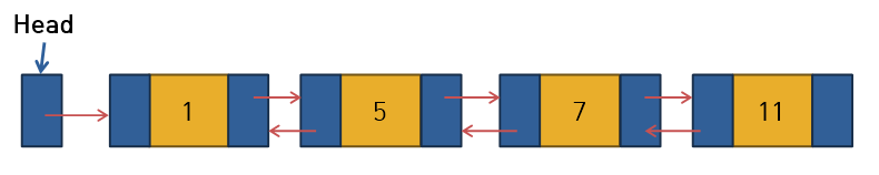 이렇게 되면 정렬된 연결리스트의 삽입 삭제에 있어서 이전 노드로 되돌아가기가 쉬워진다.
