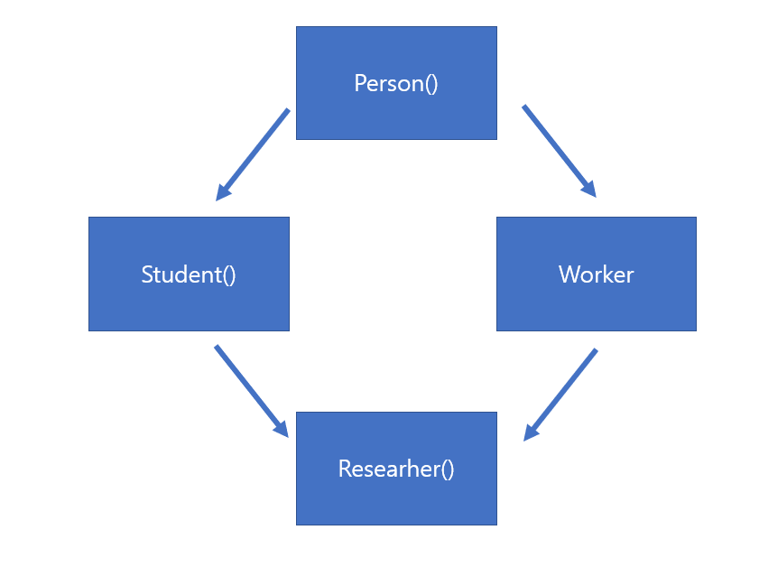 이렇듯 Researcher 클래스가 Student와 Worker 클래스를 상속 받고 있다.