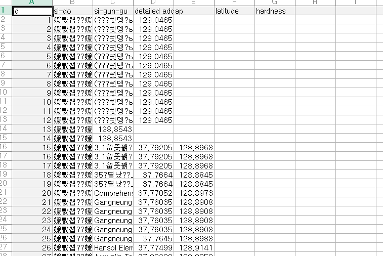 다시 csv파일을 열었을 때 다음과 같이 보이면 성공이다.