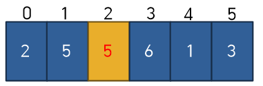 int A[] = {5,2,4,6,1,3}; //index값은 0부터 시작한다. (A[0] = 5, A[1] = 2, A[2] = 3)
