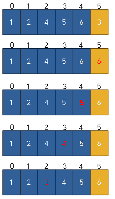 주황색 사각형은 key값이고, 오른쪽으로 비교하기 시작한다.